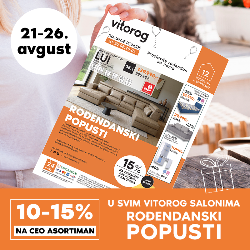 „U periodu od 21. do 26.08. povodom 12. rođendana u Beogradu, pripremili smo fantastične popuste za sve vas“, naglasili su iz Vitorog salona nameštaja.